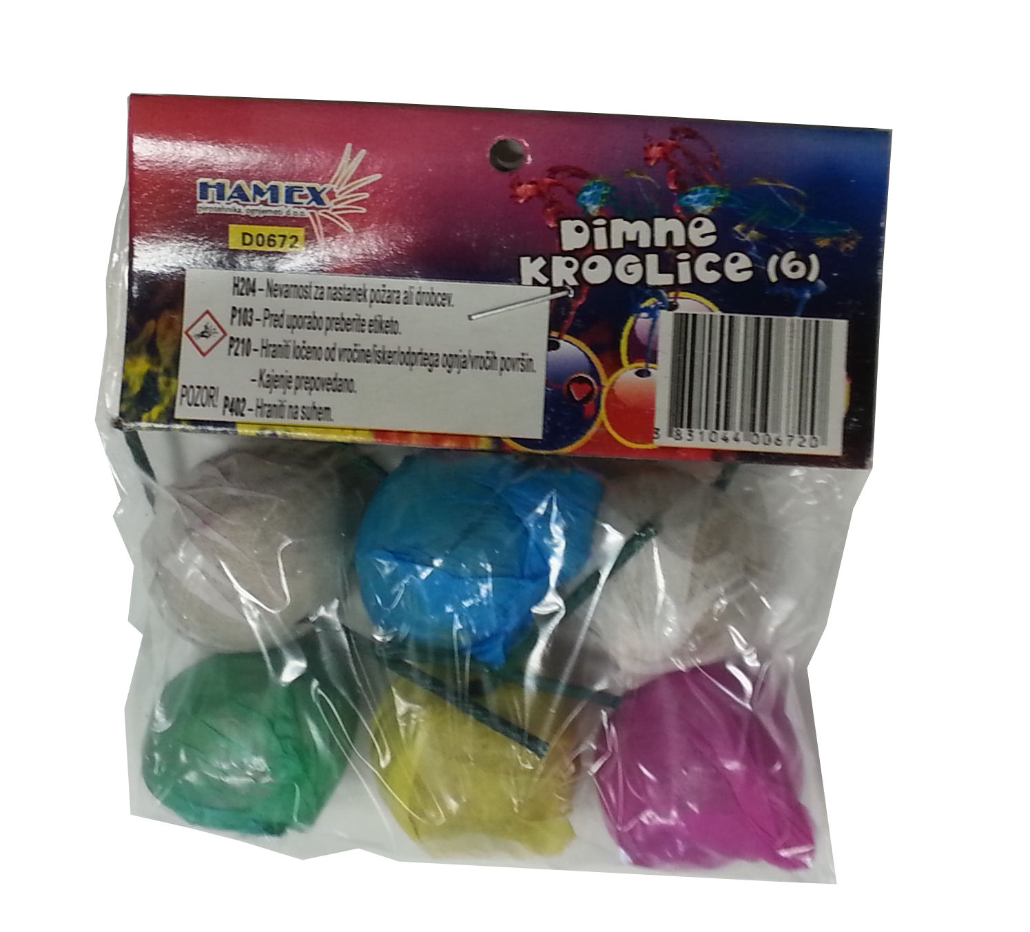 KAT T1. Efekt: Dimni efekti v različnih barvah. NEM: 6 g. Pakirano 6 kos različnih barv v vrečki.