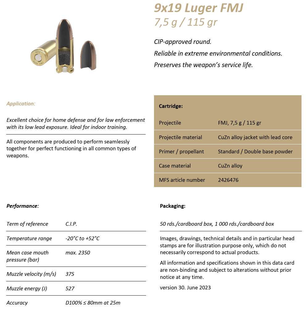 Odličen vadbeni naboj v priljubljenem kalibru 9×19.