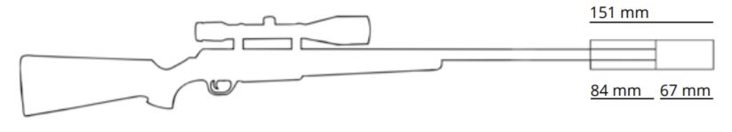 Izjemno kompakten dušilec zvoka iz podjetja Hausken. Idealna izbira za lahka orožja in za vodnike psov: HAUSKEN JD 151 XTRM MKII je najbolj kompakten dušilec zvoka za standardne kalibre iz Hauskena. Zaradi majhnega podaljška orožja, ki meri le 67mm, je ta dušilec zvoka idealna izbira, ko gre za čim bolj kompaktno orožje z vgrajenim dušilcem zvoka. Nizka teža v kombinaciji z majhnim podaljškom ohranja ravnovesje orožja. To je ključni dejavnik, zlasti pri lahkih puškah. Ta dušilec zvoka ni primeren za orožje z odprtimi merki. Največji zunanji premer cevi 23mm. Moč dušenja približno 25dB. Presek odprtine 6,5mm, primerno za: .22/222/223/22-25