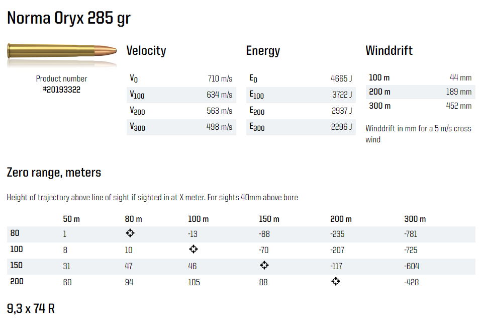 NORMA CTG 9,3x74R ORYX 285gr 18,5g (20)
