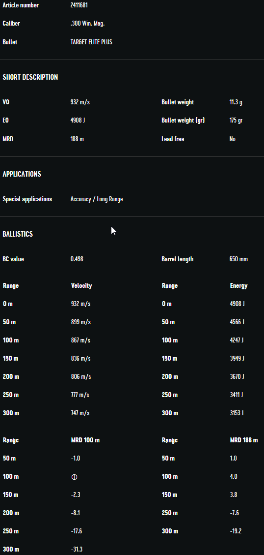 RWS .300 Win. Mag. Target Elite Plus 11.3g (20)