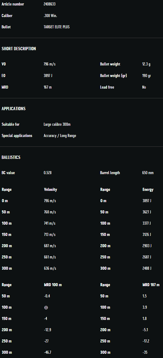 RWS .308 Win Target Elite PLUS 10,0g (20)