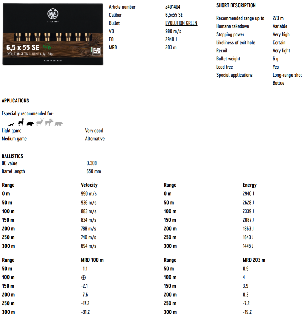 RWS 6,5×55 EVO GREEN 6,0g (20)