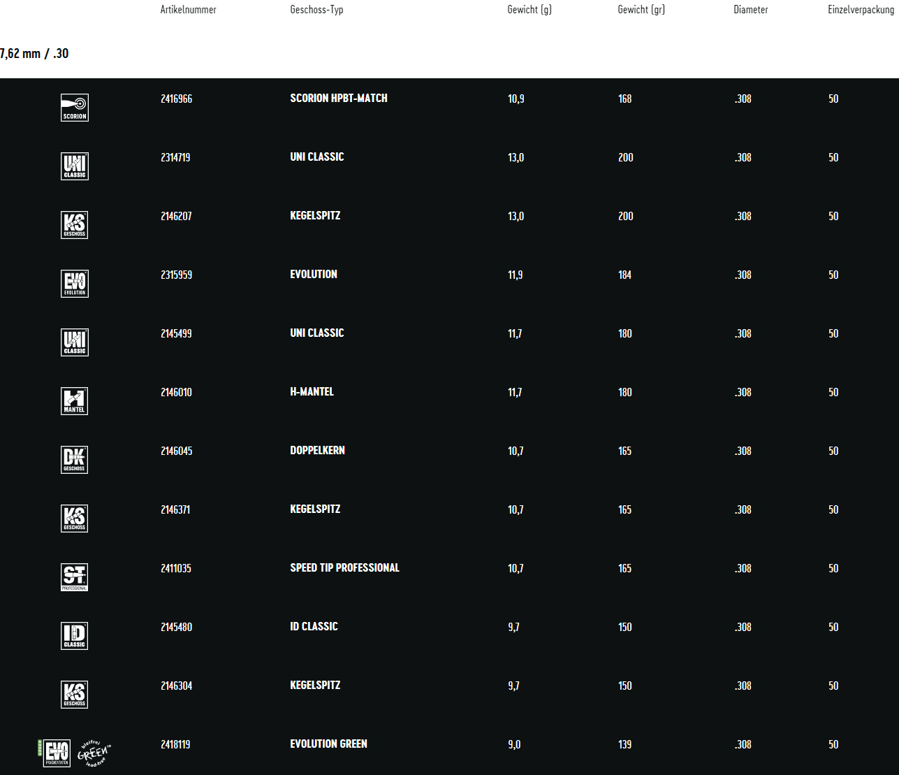 RWS krogla .30 / 7,62mm ID classsic 9,7g 50kos