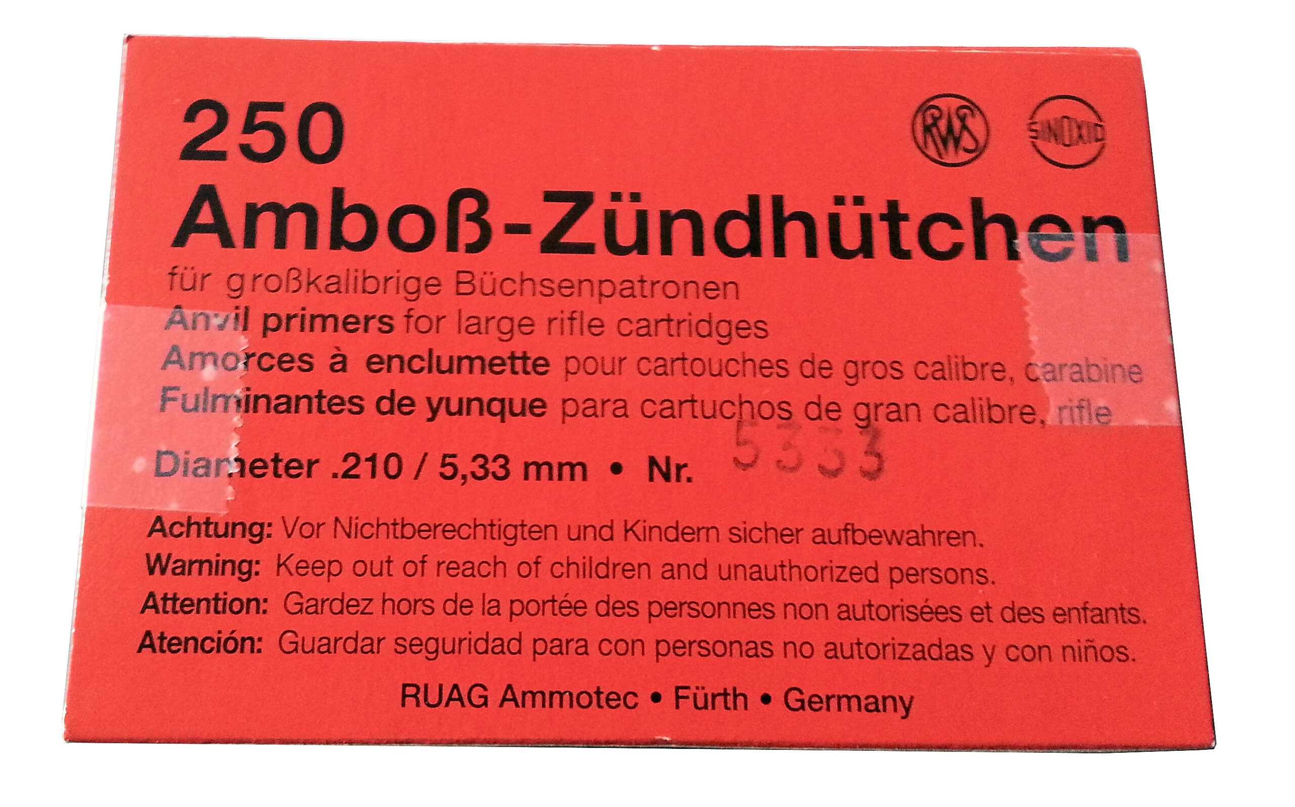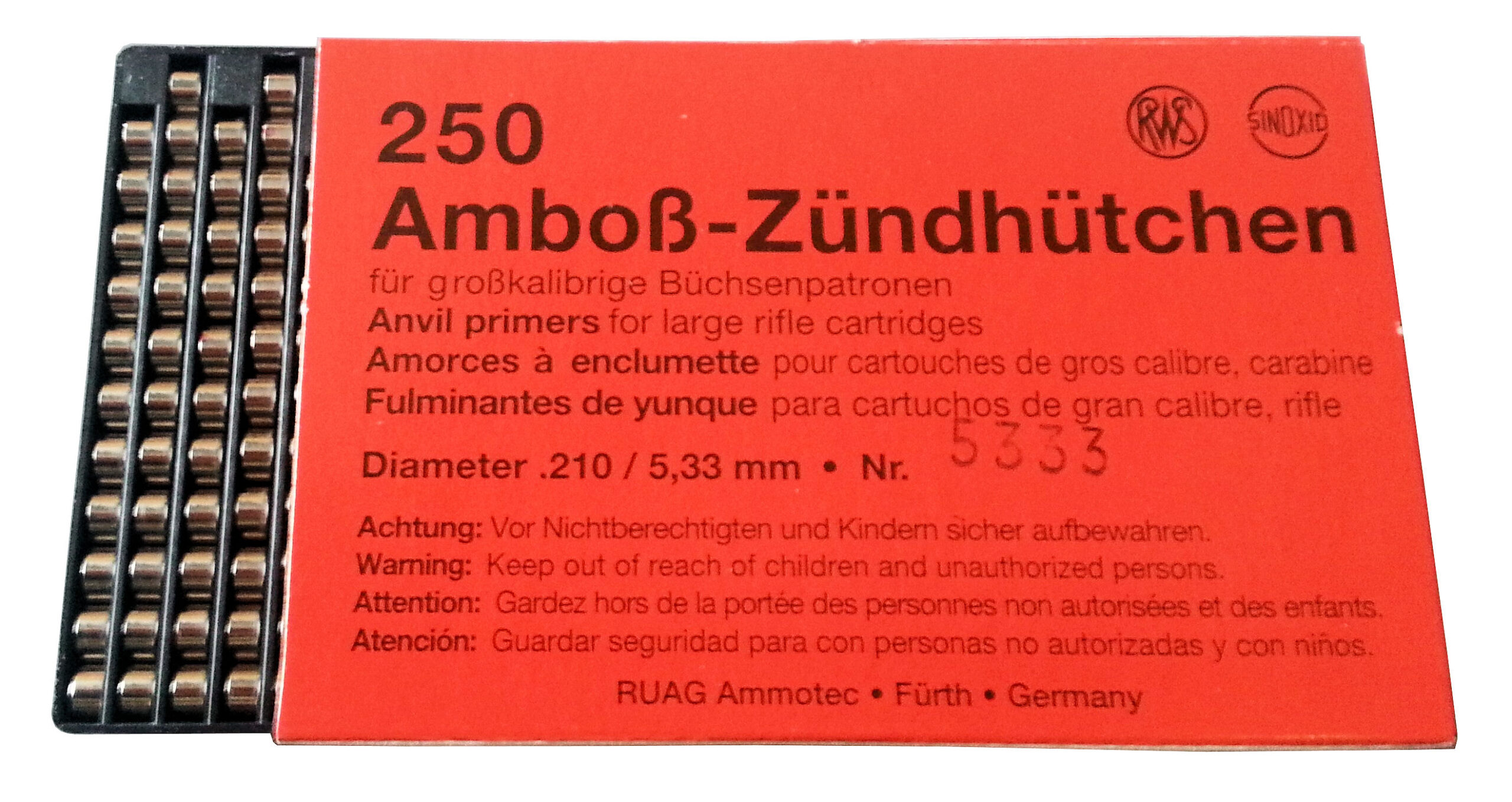 Za večje kalibre, Magnum. fi 5,33mm za kalibre: 6,5×68; 7×64; 7mm Rem. Mag., 8x68S. Pakiranje 100kos.