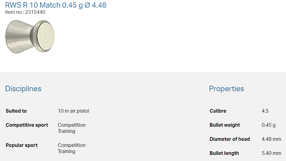 RWS R10 Match 4,48mm 0,45g (500) pištola
