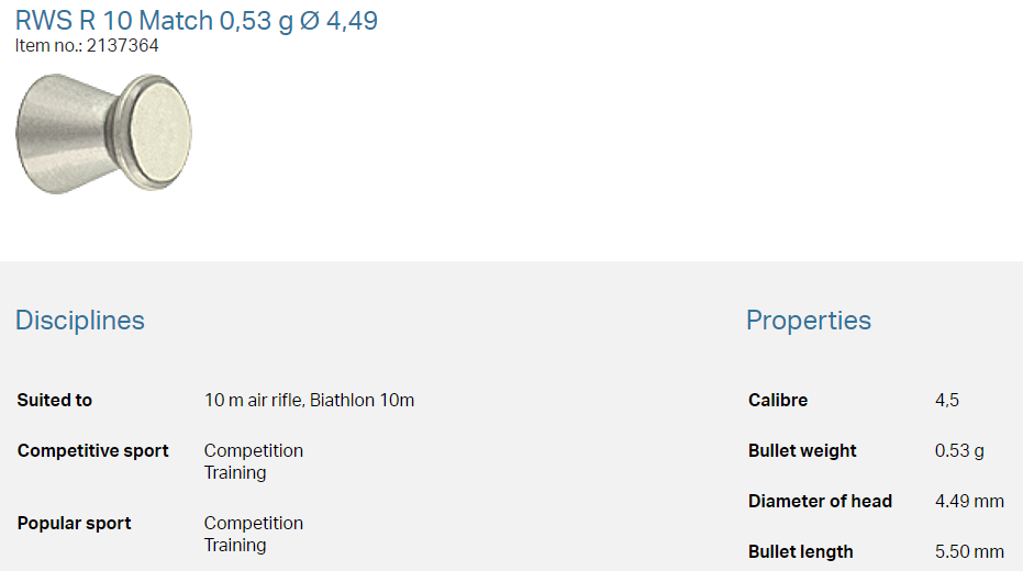 RWS R10 Match 4,49mm 0,53g (500) puška