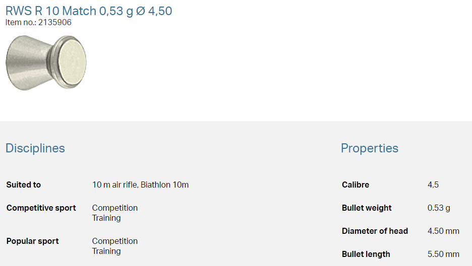 RWS R10 Match 4,50mm 0,53g (500) puška