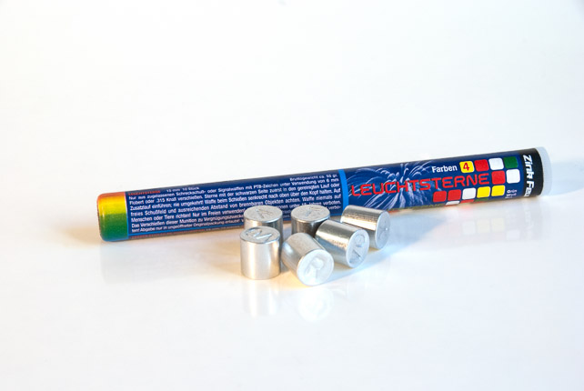 KAT P. 10 malih raket v štirih barvah za uporabo s startno pištolo.