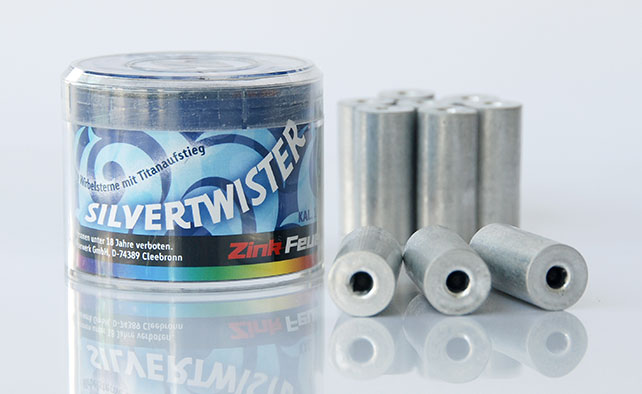 Silvertwister, priročno pakiran v paketu po 16 nabojev, zagotavlja impresiven srebrn vrtinčni vzpon. Majhna šoba na dnu ustvarja čudovit vrtinec s širokim vzorcem isker iz titana.