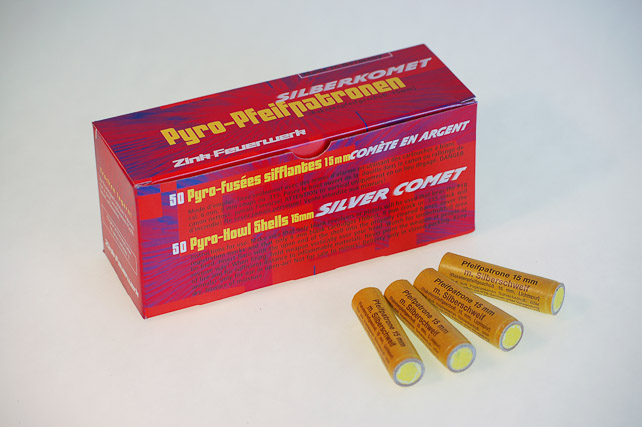 KAT P. Efekt: Žvižgajoče rakete za uporabo s startno pištolo. Pakiranje 50 kosov.